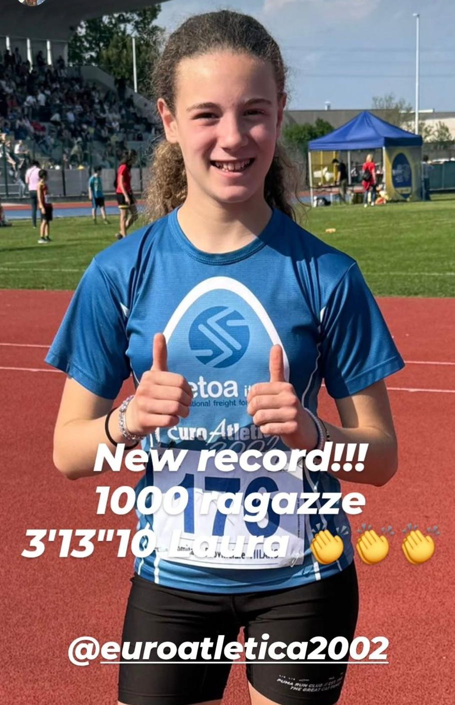 Laura May percorre i 1000 mt con uno splendido 3'13"10, che le vale un record EA2002 di categoria che resisteva da diversi anni, e che apparteneva a una certa Giorgia Franzolini.