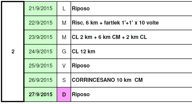 Archiviata la prima settimana eccoci pronti con gli allenamenti della seconda.