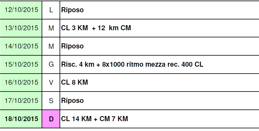 Ogni domenica sera troverete il programma di allenamento per la settimana succesiva.
